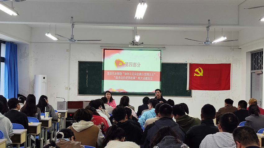 最后学生代表陈果围绕“如何立足岗位践行爱国主义”、“我身边的爱国故事”两大话题发言,分享感悟与实践方向,深化思想共识。