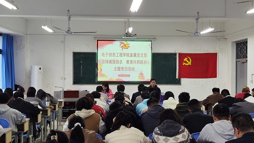 为深入弘扬爱国主义精神,筑牢党员理想信念,切实将“为党育人、为国育才”的初心使命落到实处,2025年10月22日16:30许,电子信息工程学院直属党支部组织全体党员于第二教学楼b206开展“爱国铸魂强信念,教育兴邦践初心”主题党日活动,以理论学习、实践感悟凝聚奋进力量。