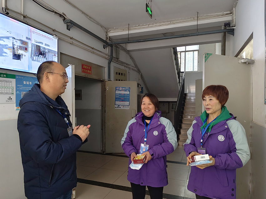 李虎详细询问各公寓管理员的工作情况并检查了公寓服务育人示范岗创建情况。他对他们长期以来默默奉献、尽职尽责表达感谢。他表示,公寓管理员是学生日常管理与服务育人的重要支撑,眼下正值冬季流感多发期,希望大家在工作之余也照顾好自身健康,做好日常防护,保持良好状态,继续为广大学生提供温馨、贴心的服务。